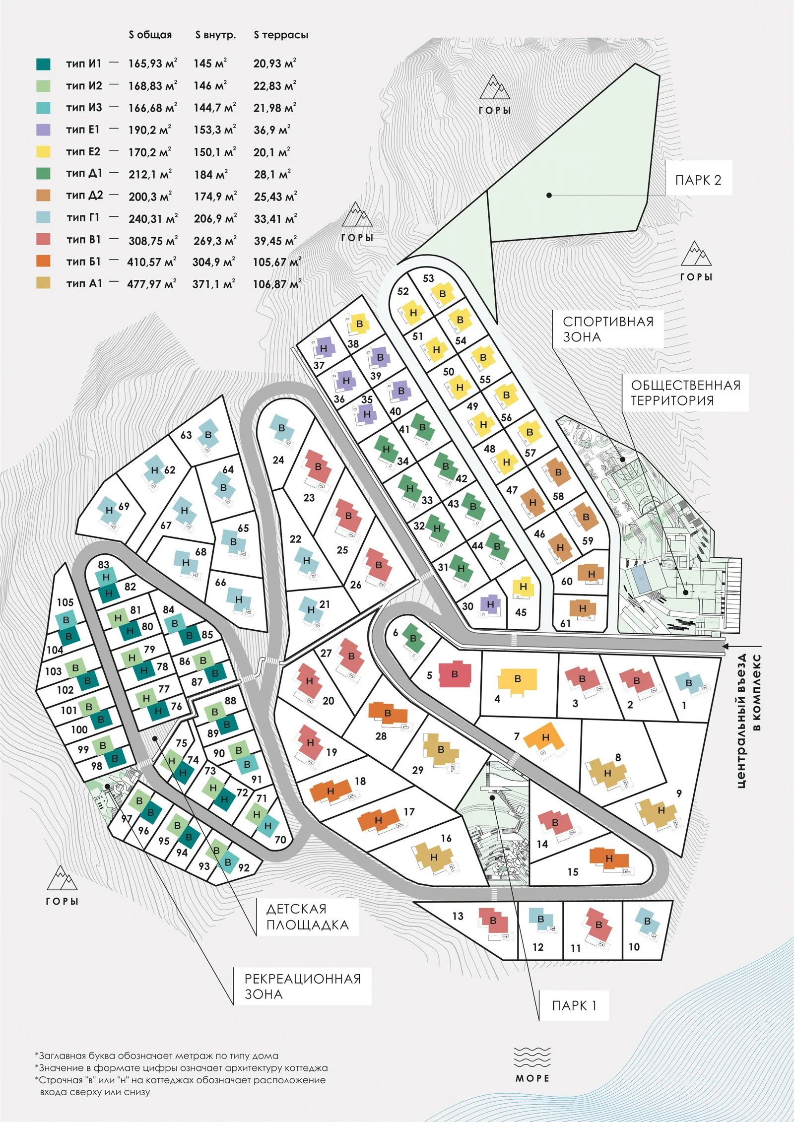 Поселок выполнен в едином архитектурном стиле «шале», который гармонично вписывается в уникальный горный ландшафт местности и отражает концепцию швейцарского горного городка. Его отличительные черты — лаконичность форм, классическая покатая крыша, отделка из натурального камня и дерева и панорамные окна, обеспечивающие внутренние помещения большим количеством естественного света.